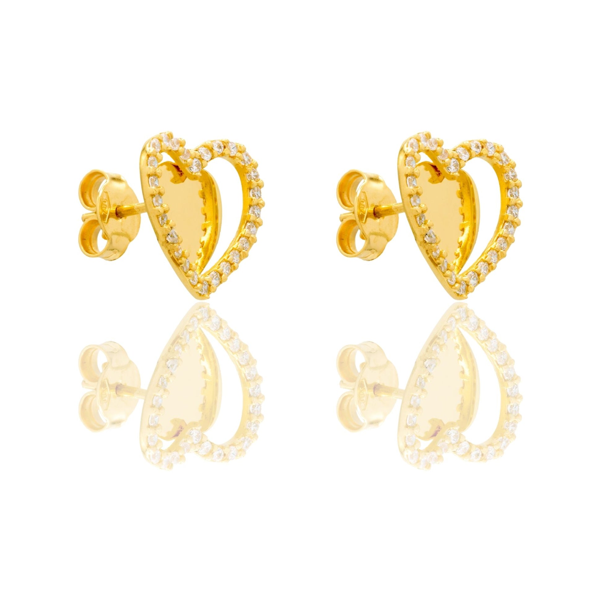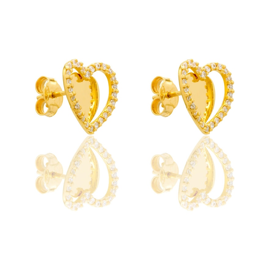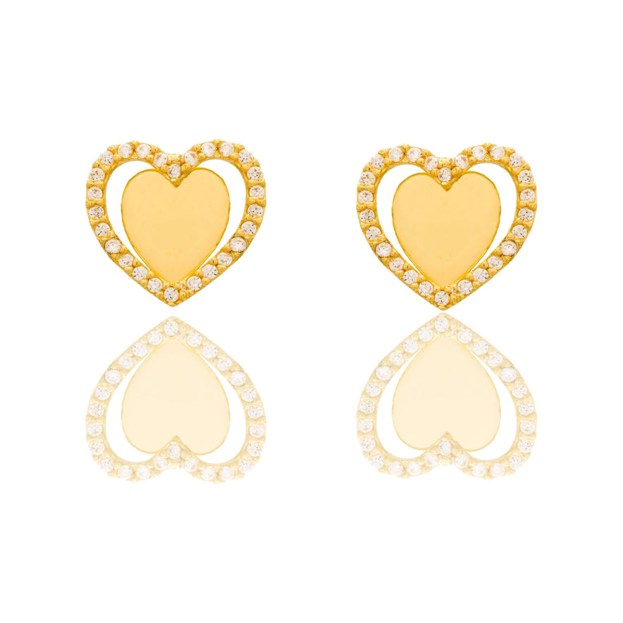 Orecchini in oro GIALLO Oro 18 carati Cuore A Lastra Liscia Con Contorno Zirconi Bianchi Gr. 2,8