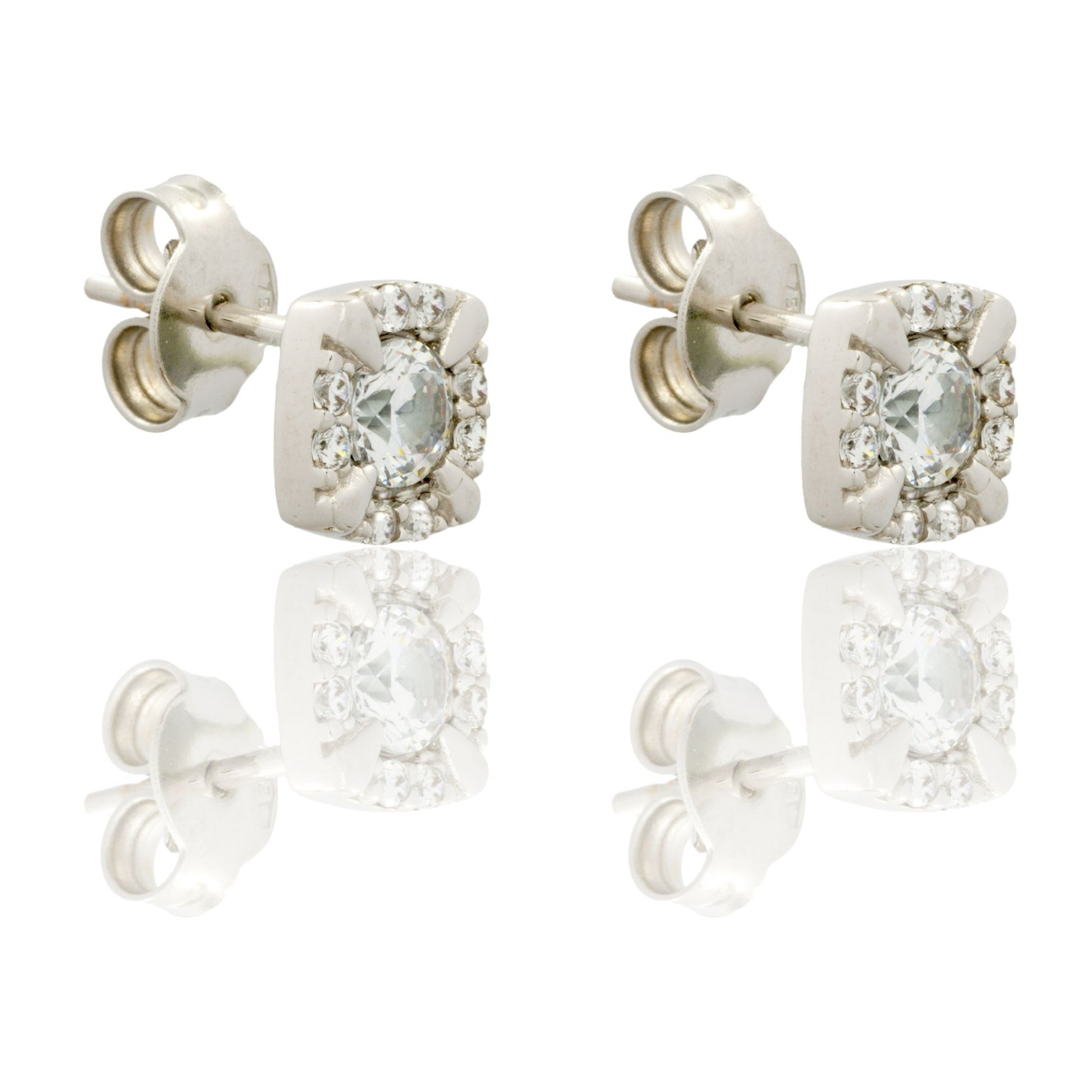 Orecchini in oro BIANCO Oro 18 carati Quadrato A Lobo Centro E Contorno Zirconi Bianchi Gr. 2,2