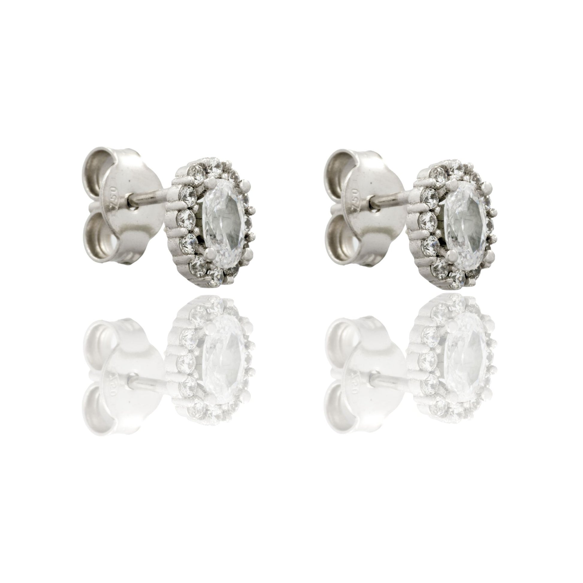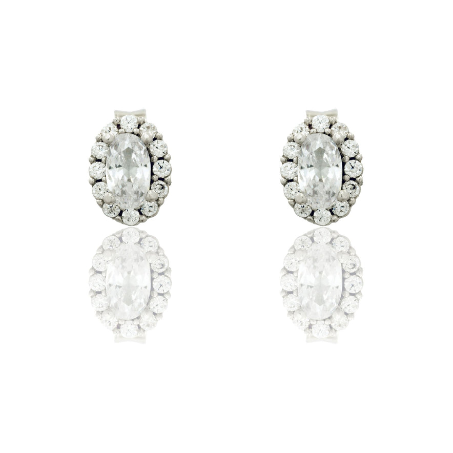Orecchini in oro BIANCO Oro 18 carati Ovale A Lobo Centro E Contorno Zirconi Bianchi Gr. 1,6