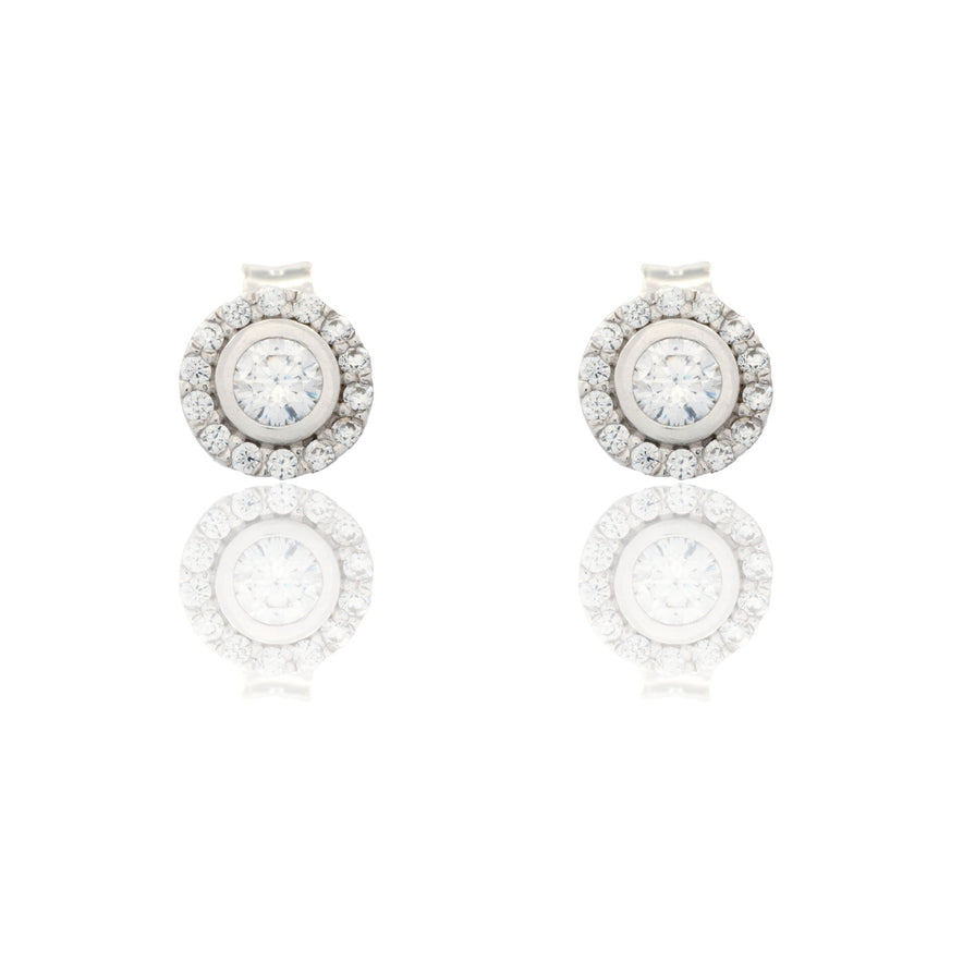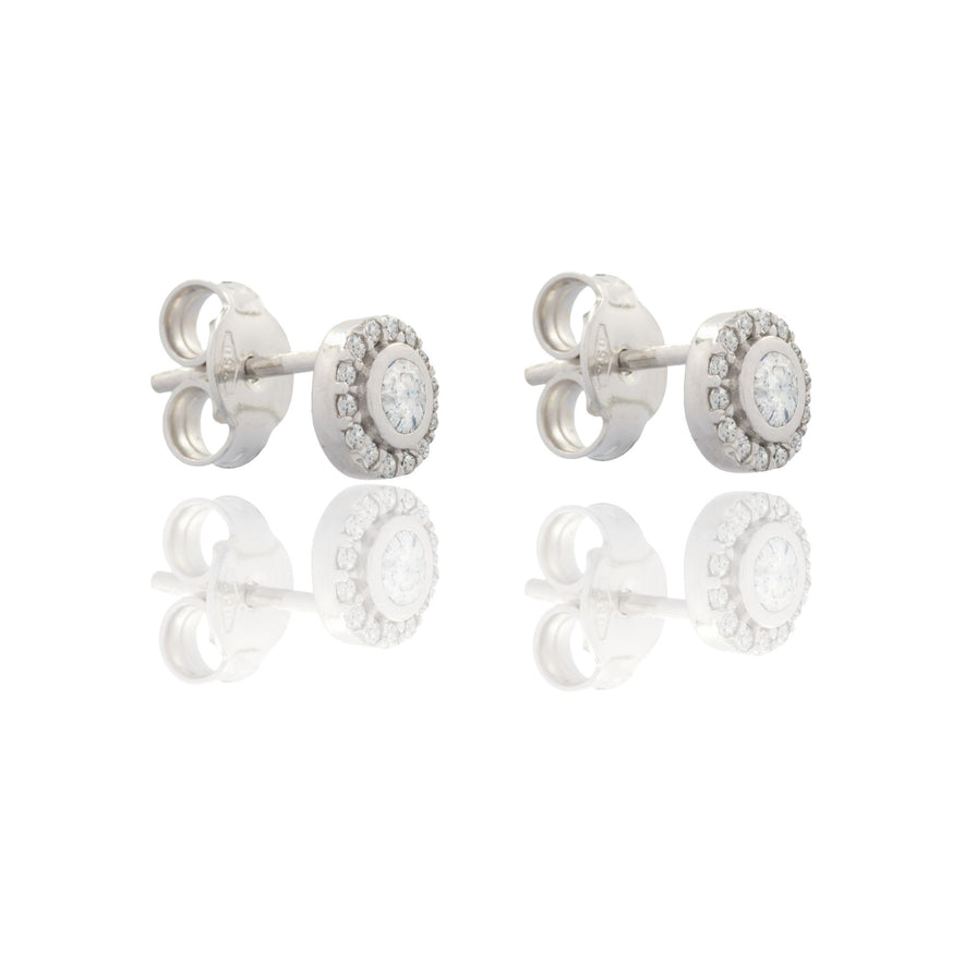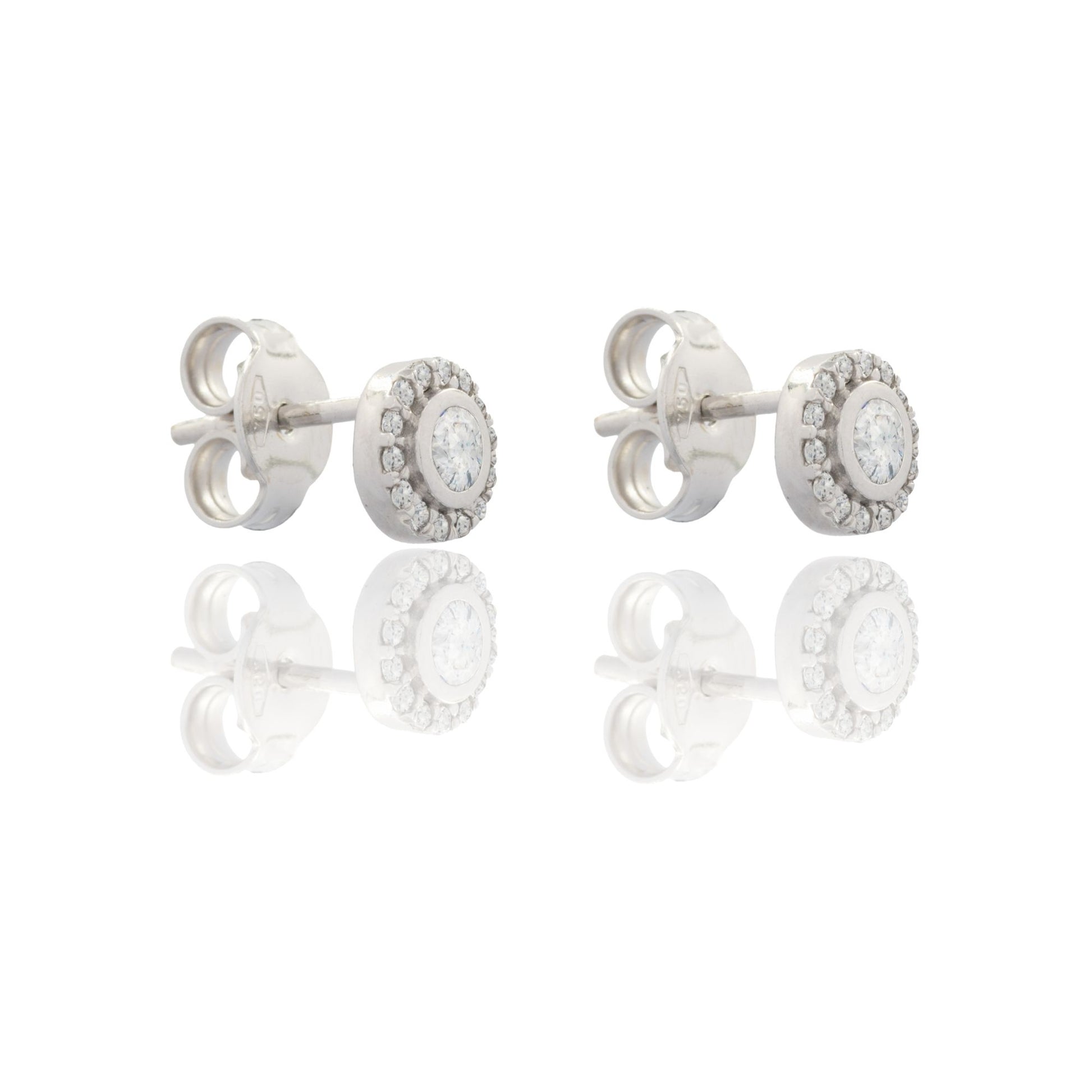 Orecchini in oro BIANCO Oro 18 carati Punto Luce Tondo Con Contorno Zirconi Bianchi Gr. 1,5