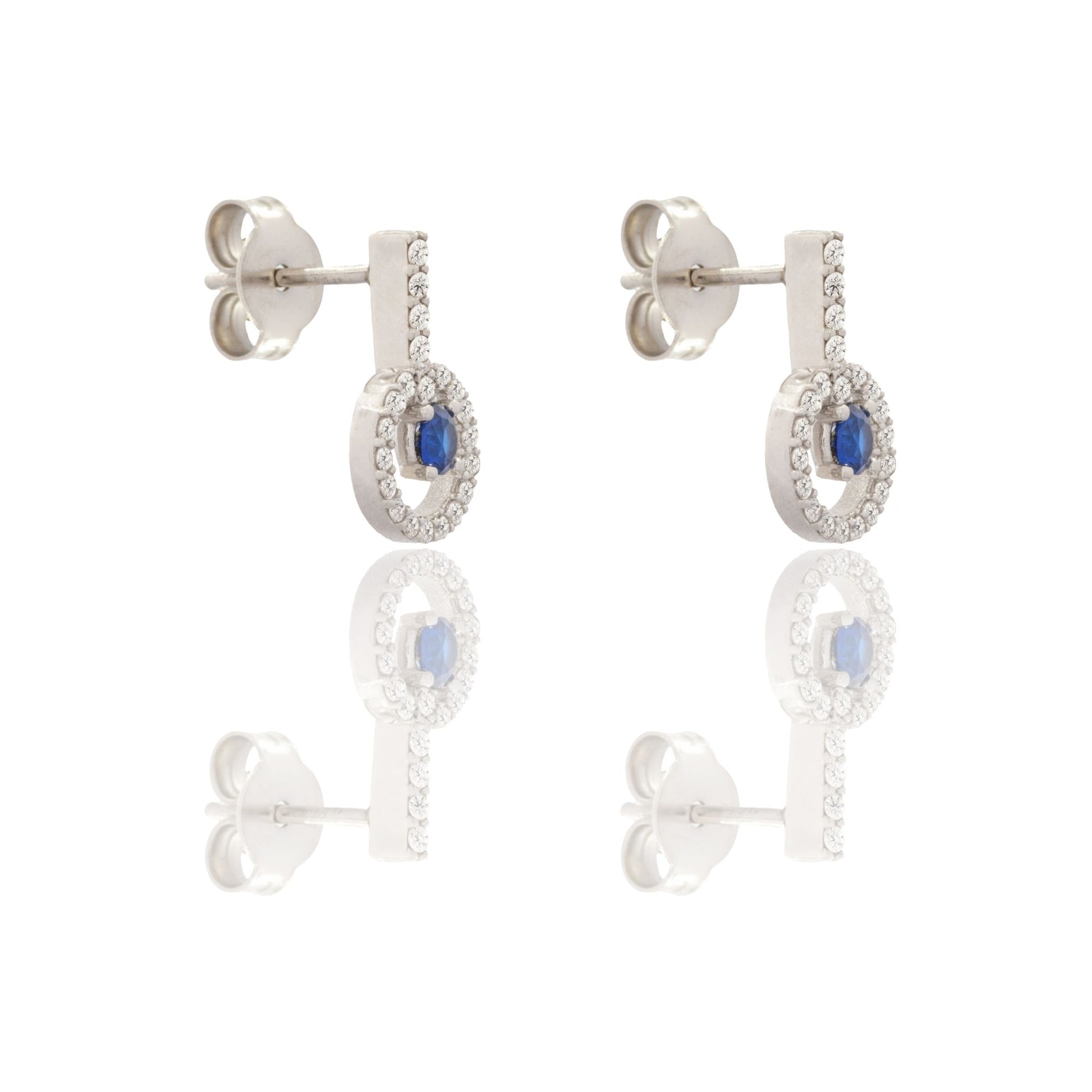 Orecchini in oro BIANCO Oro 18 carati Cerchio Pendente Con Pietra Centrale Zircone Blu, Zirconi Bianchi Gr. 2