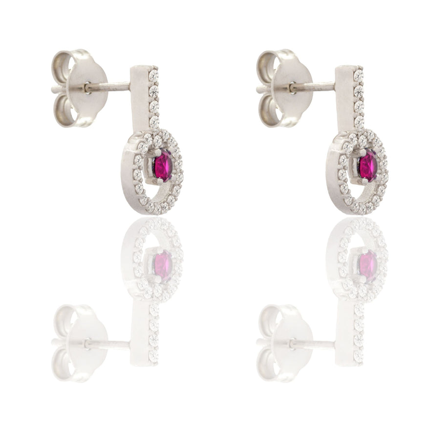 Orecchini in oro BIANCO Oro 18 carati Cerchio Pendente Con Pietra Centrale Zircone Rosso, Zirconi Bianchi Gr. 2