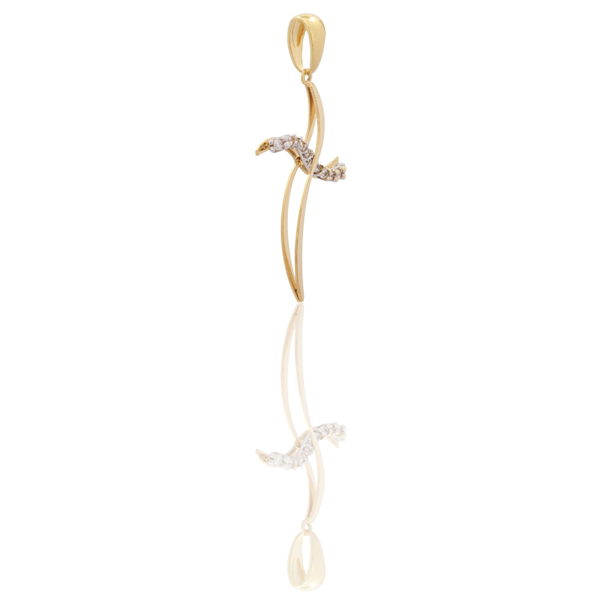 Ciondolo in oro BICOLORE Oro 18 carati Croce Ondulata Zirconi Bianchi Gr. 1,5