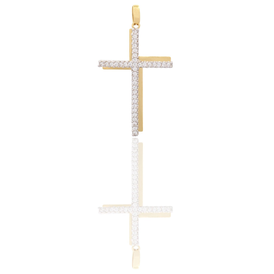 Ciondolo in oro GIALLO Oro 18 carati Croce Stilizzata Dritta Zirconi Bianchi Gr. 2,1