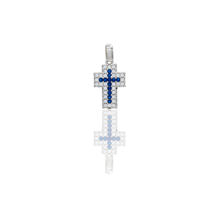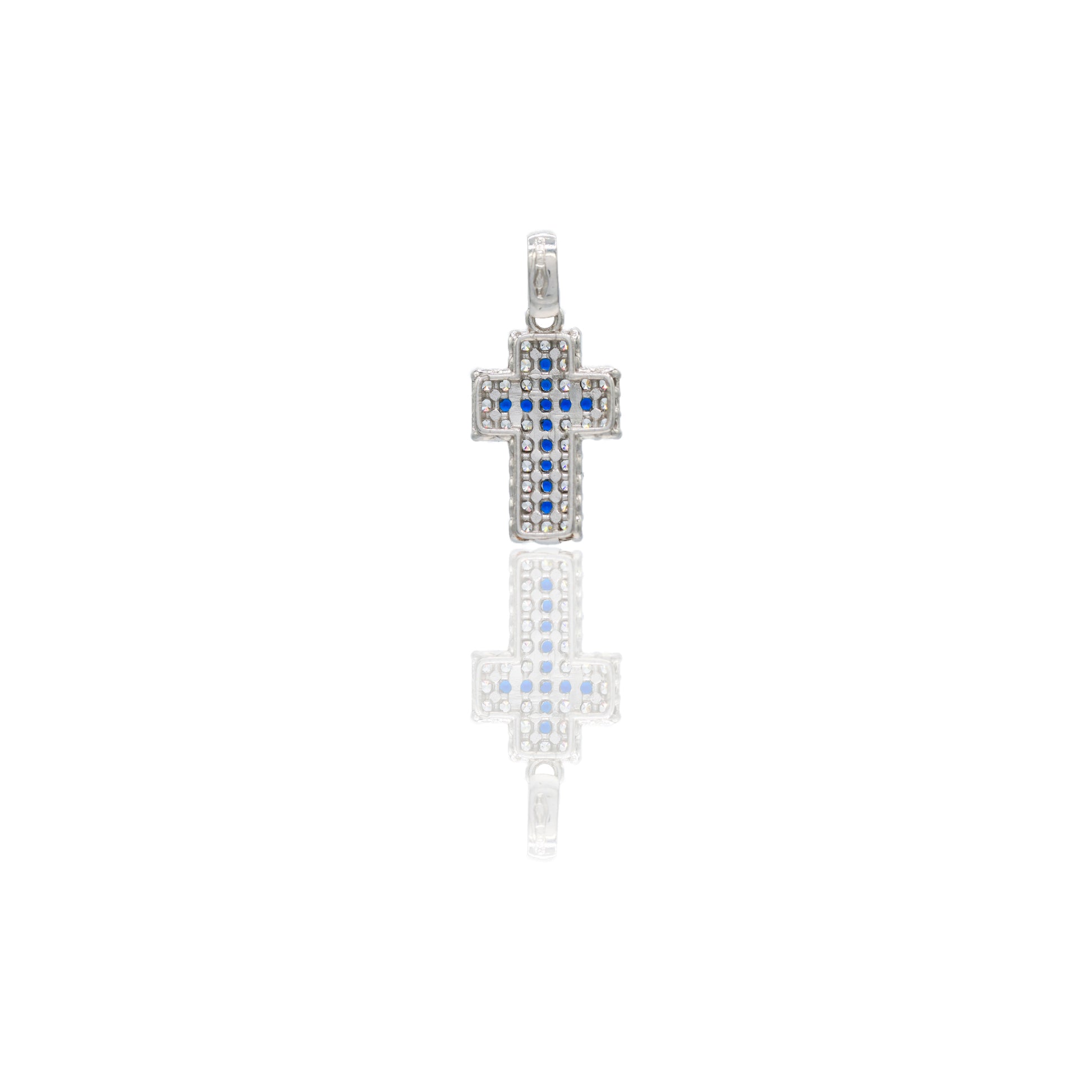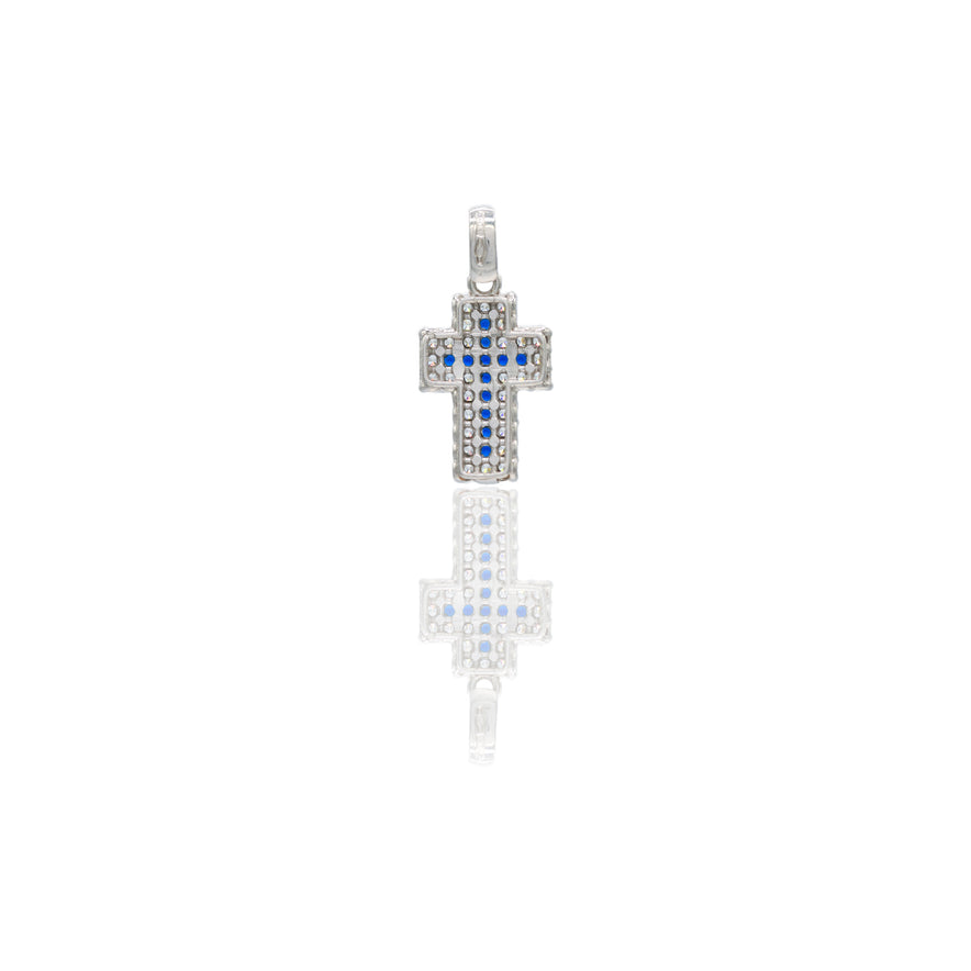 Ciondolo in oro BIANCO Oro 18 carati Croce pavè Zirconi Bianchi, Zirconi blu lunghezza cm. 2.00 larghezza cm. 1,00 Gr. 1,5