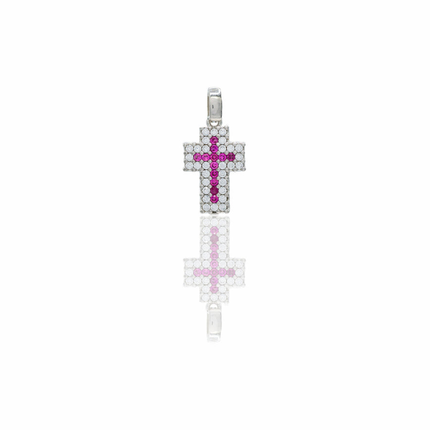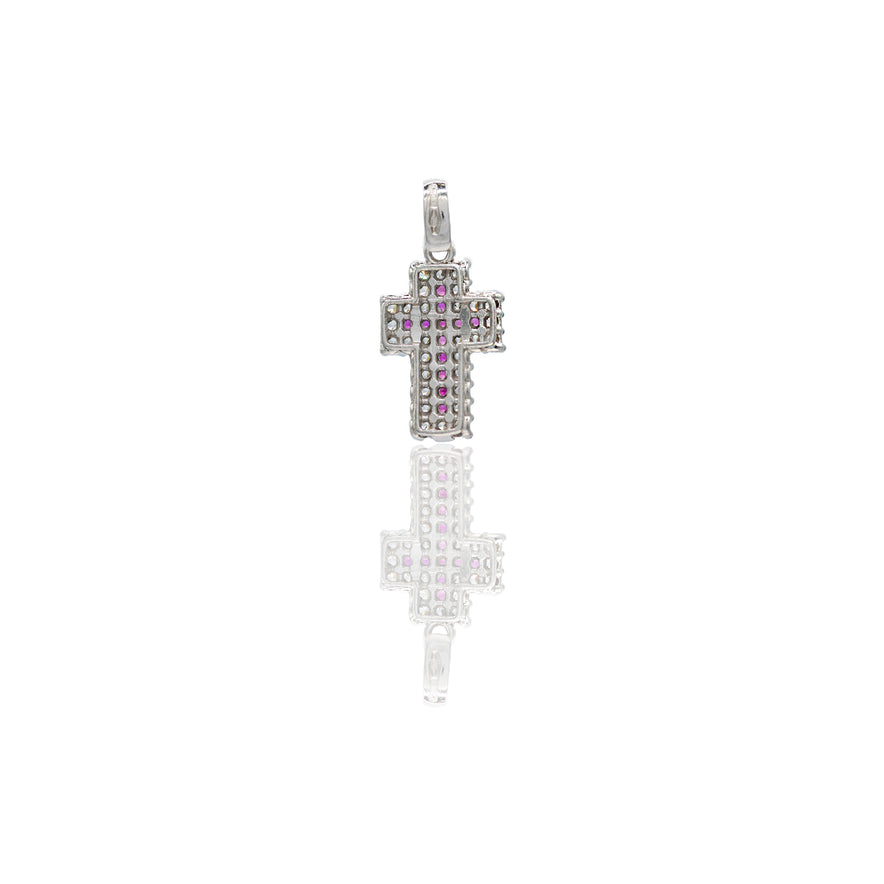 Ciondolo in oro BIANCO Oro 18 carati Croce pavè Zirconi Bianchi, Zirconi Rossi lunghezza cm. 2.00 larghezza cm. 1,00 Gr. 1,5