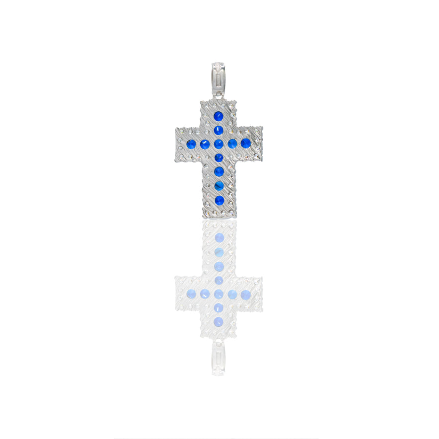 Ciondolo in oro BIANCO Oro 18 carati Croce pavè Zirconi Bianchi, Zirconi blu lunghezza cm. 2,4 larghezza cm. 1,5 Gr. 1,7