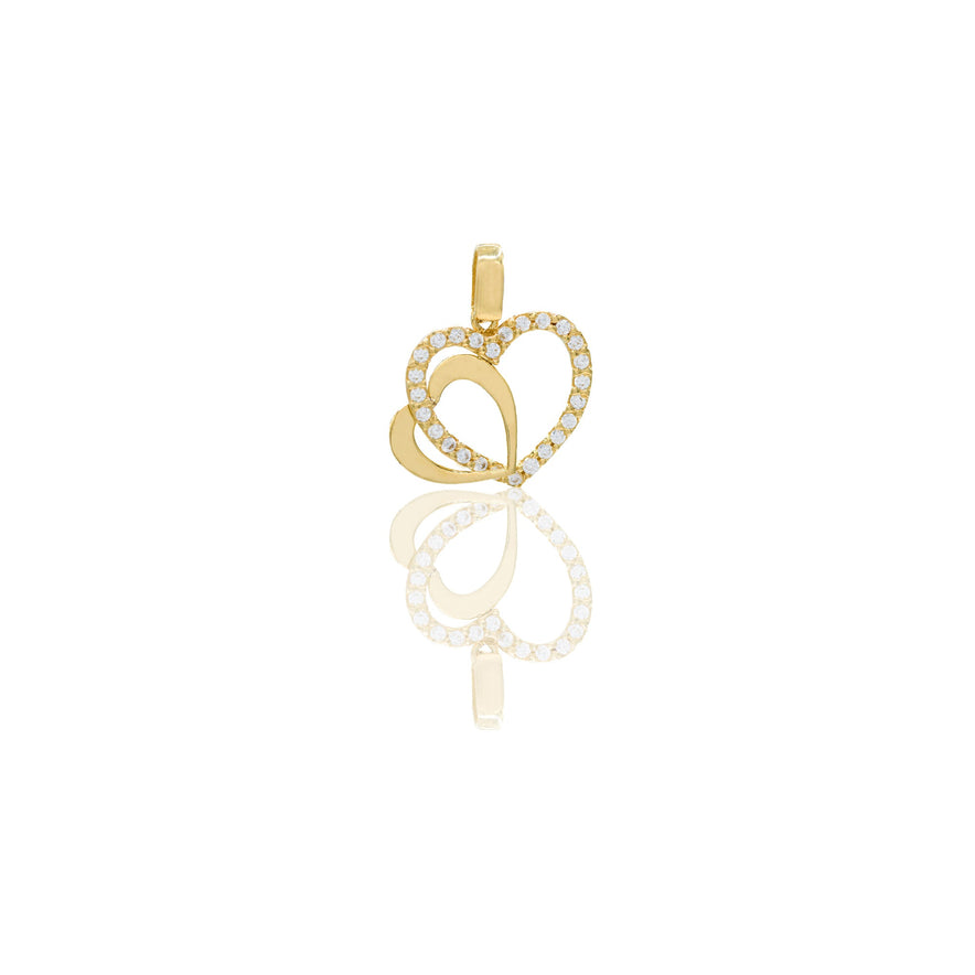 Ciondolo in oro GIALLO Oro 18 carati Doppio cuore pavè Zirconi Bianchi lunghezza cm.1,5 larghezza cm.1,3 Gr. 0,75