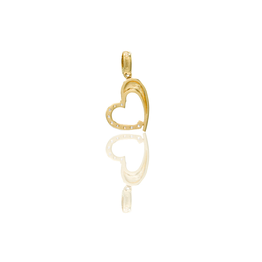 Ciondolo in oro GIALLO Oro 18 carati Cuore pavè Zirconi Bianchi lunghezza cm.1,7 larghezza cm.1,3 Gr. 1,05