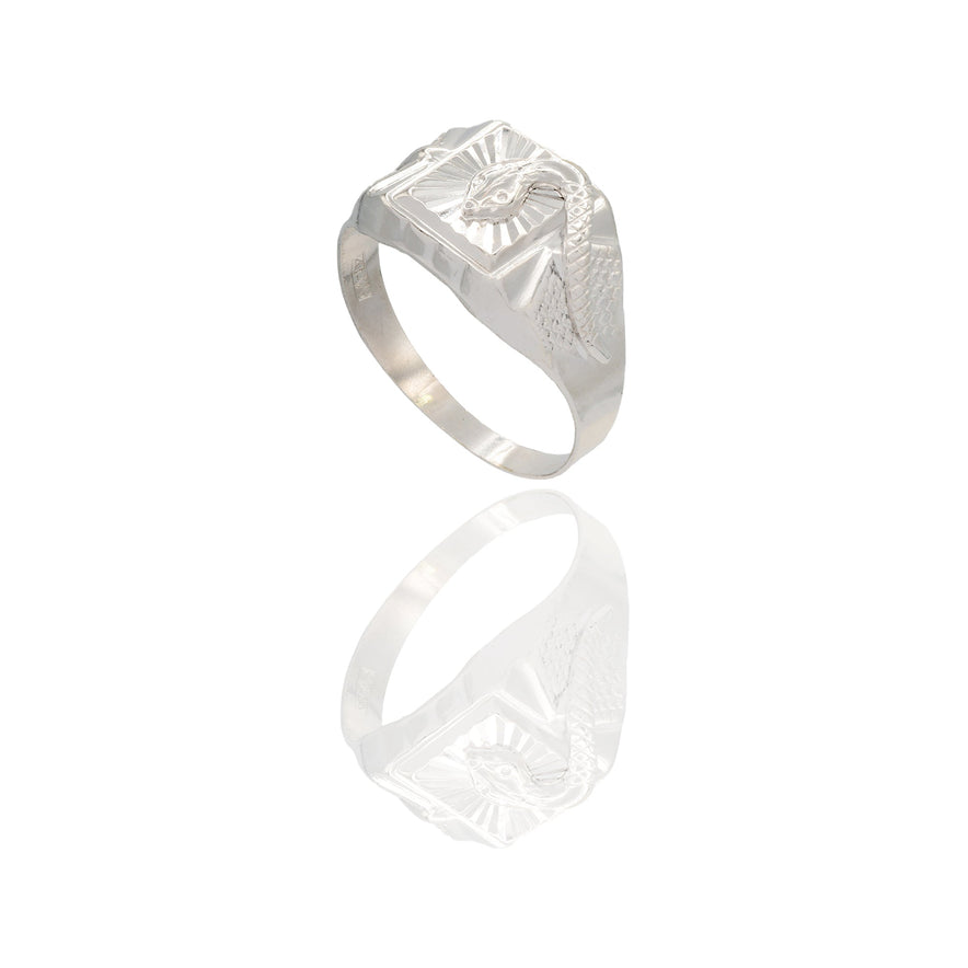Anelli in Oro bianco Oro 18 carati Uomo Scudo Quadrato Con Serpente Solo oro Spessore Gambo 2,4 mm gr. 3,55