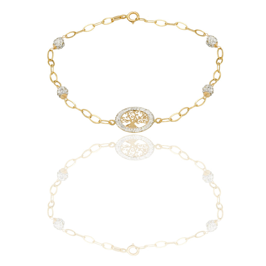 Bracciali in Oro Giallo Oro 18 carati Albero della vita traforato Resina e Zirconi cm. 18,5 gr. 1,35
