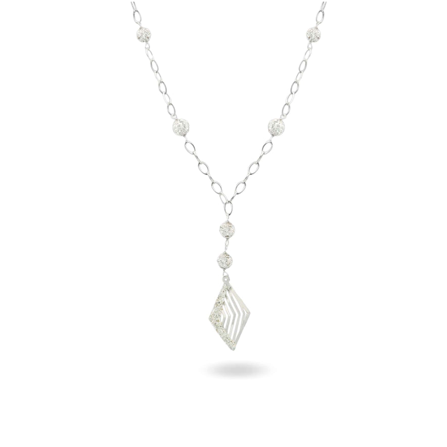 Collana in oro BIANCO Oro 18 carati Rombo Traforato Pendente Zirconi Bianchi Gr. 2,9