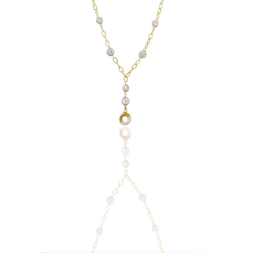 collana in Oro Giallo Oro 18 carati cerchio traforato metà zirconata pendente Zirconi Bianchi Cm. 45 gr. 2,9