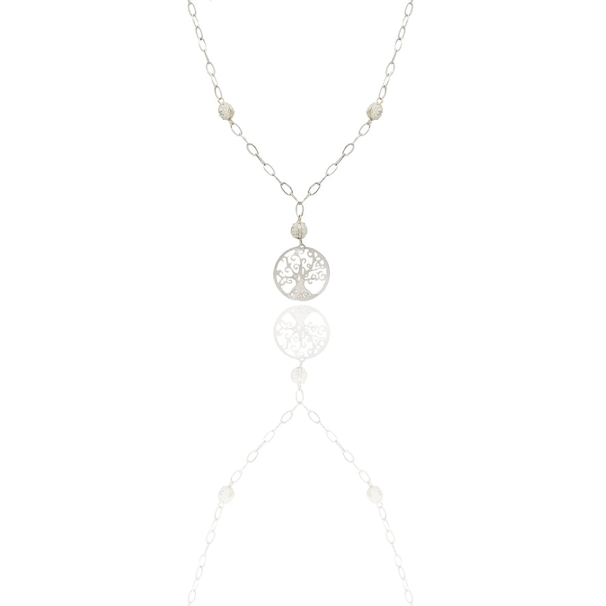 collana in Oro Bianco Oro 18 carati albero della vita Traforata Pendente Zirconi Bianchi Cm. 45 gr. 2,15