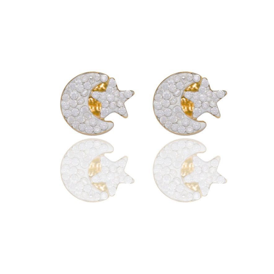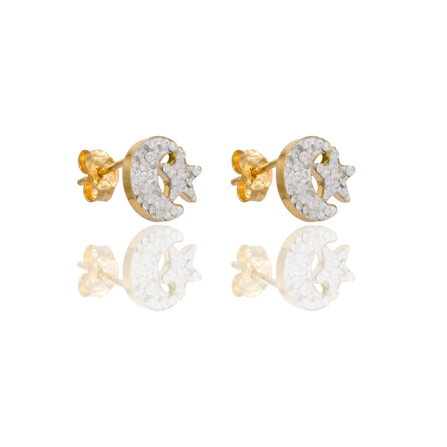 Orecchini in oro GIALLO Oro 18 carati Luna E Stella Zirconi Bianchi Gr. 1,6