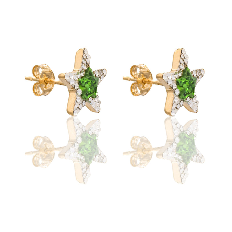 Orecchini in oro GIALLO Oro 18 carati Stella Pietra Centrale E Contorno Zircone Verde, Zirconi Bianchi Gr. 1,35