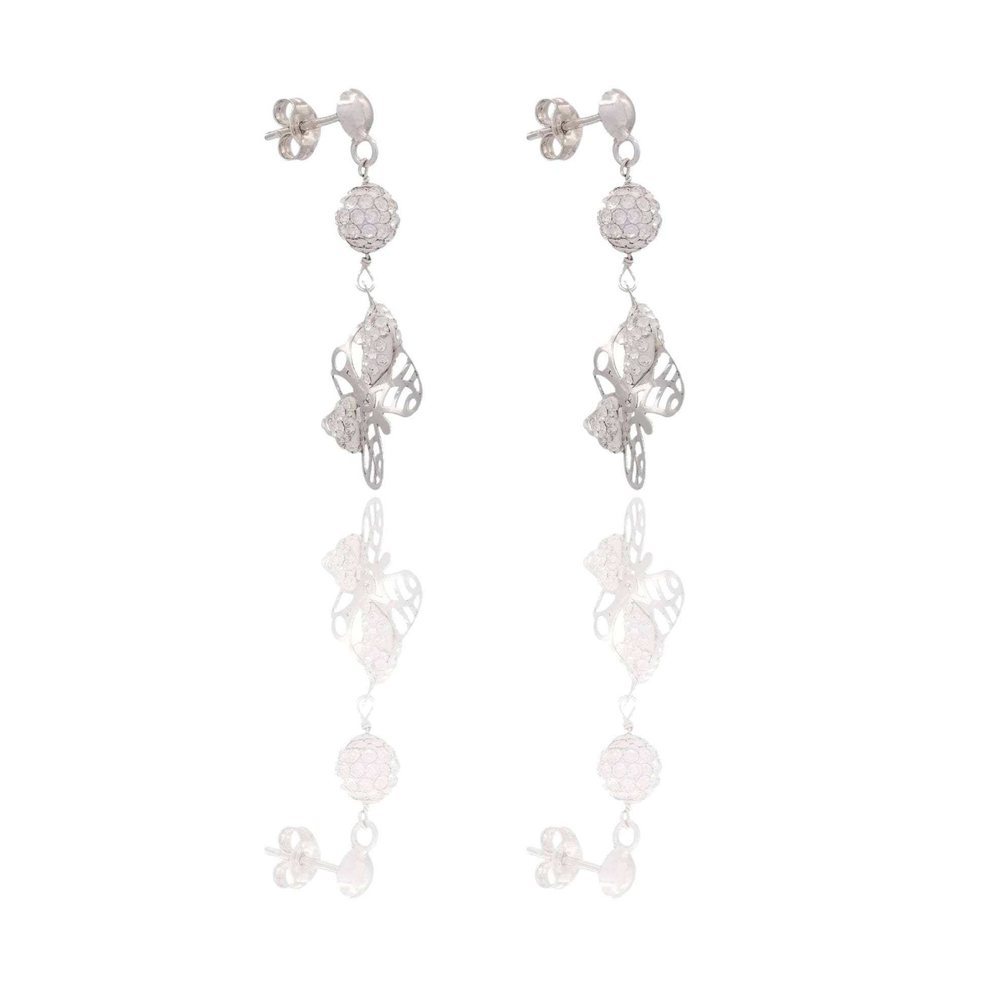 Orecchini in oro BIANCO Oro 18 carati Farfalla Traforata Pendente Zirconi Bianchi Gr. 1,75