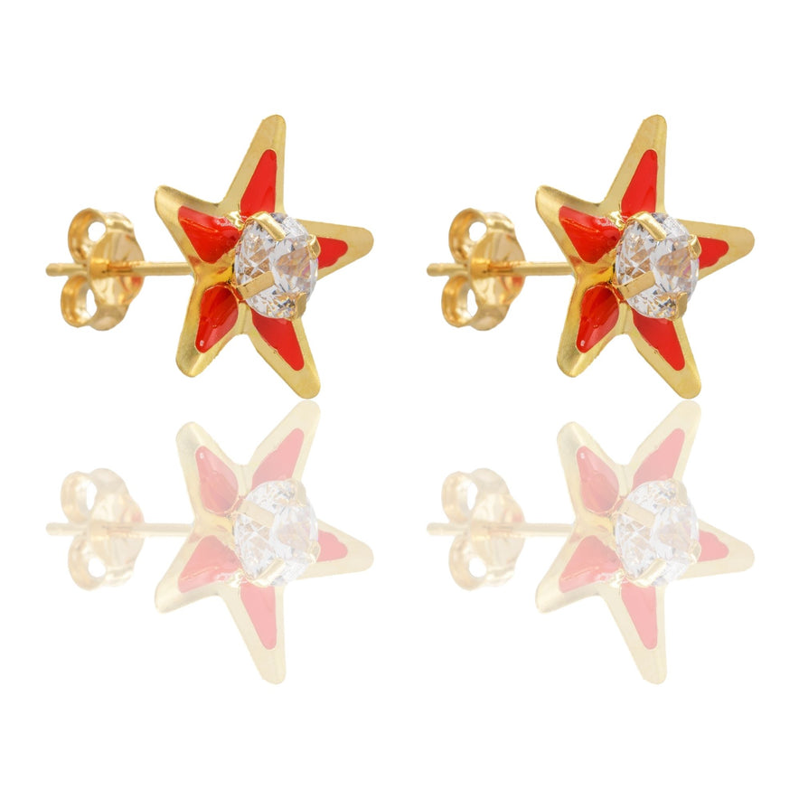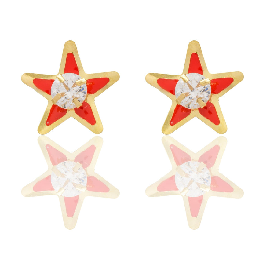 Orecchini in oro GIALLO Oro 18 carati Stelle Smaltate Con Pietra Centrale Zircone Bianco, Smalto rosso Gr. 0,65
