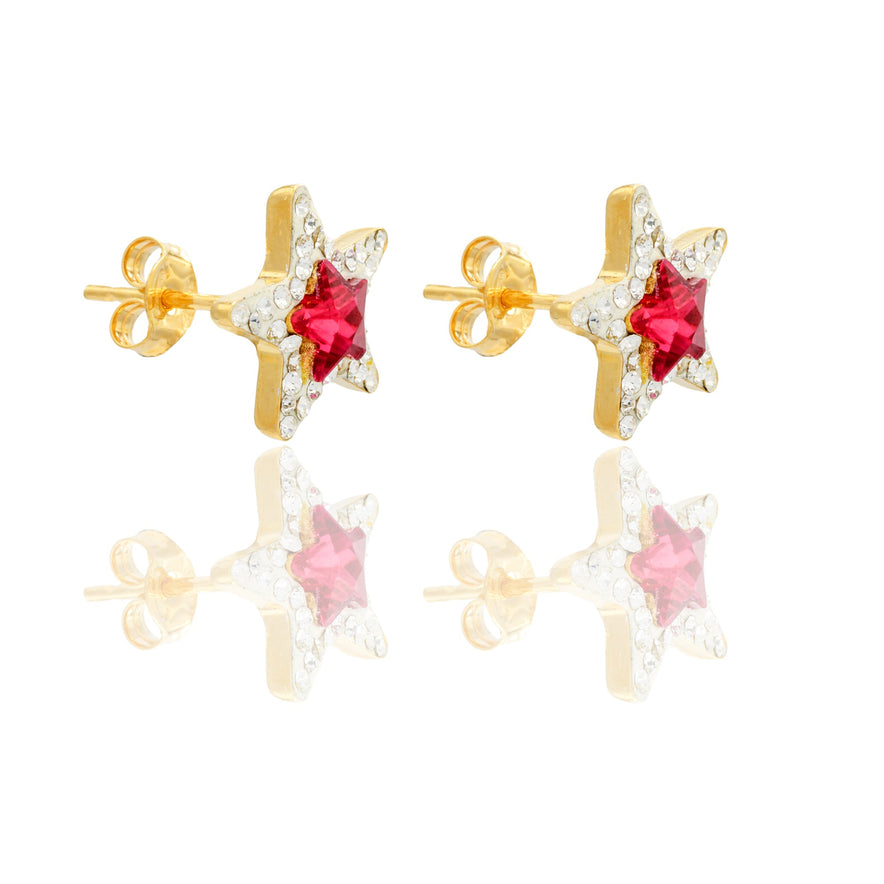 Orecchini in Oro Giallo Oro 18 carati Stella Pietra Centrale E Contorno Zircone rosso, Zirconi Bianchi cm. 1 gr. 1,3