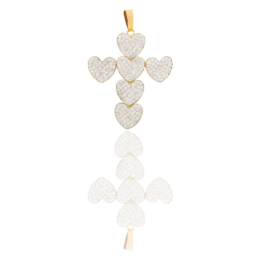 CIONDOLO DONNA CROCE CUORI ZIRCONATI