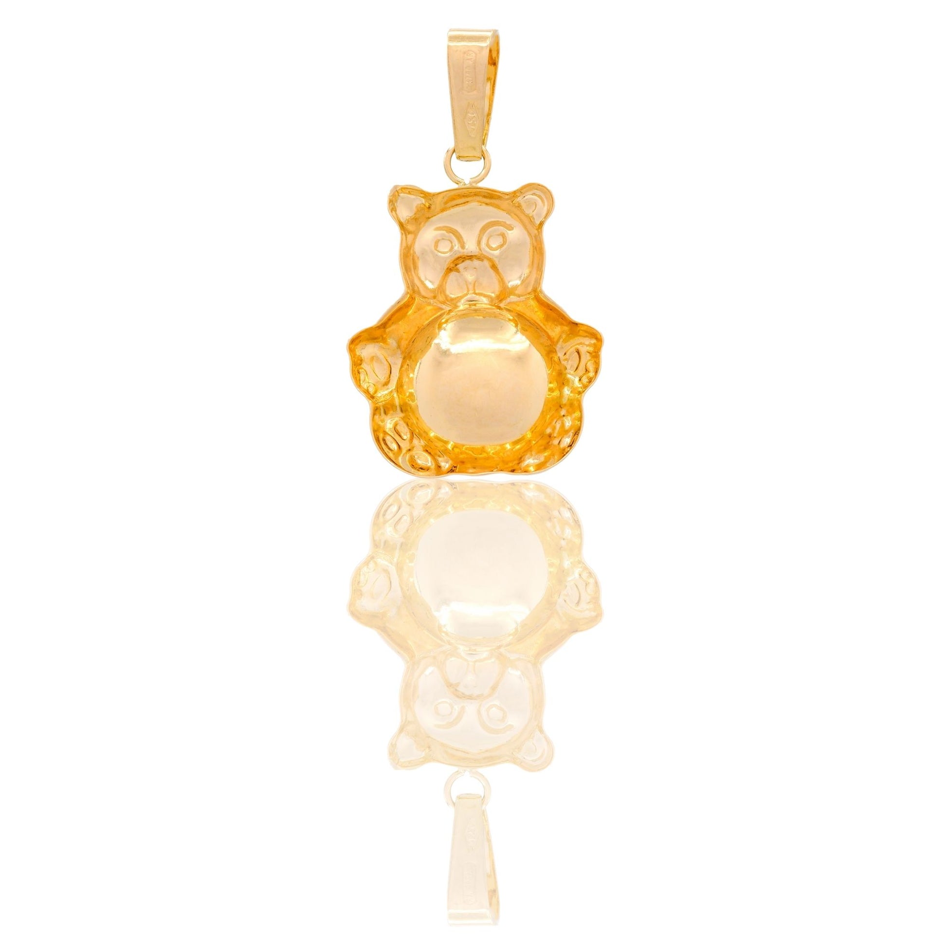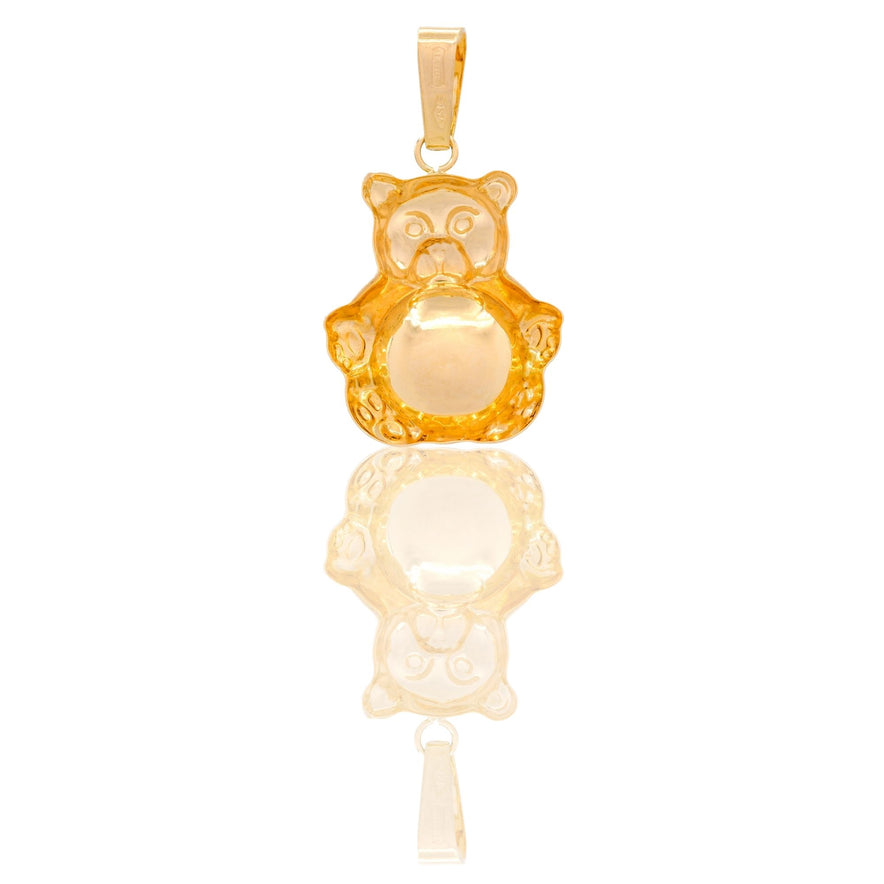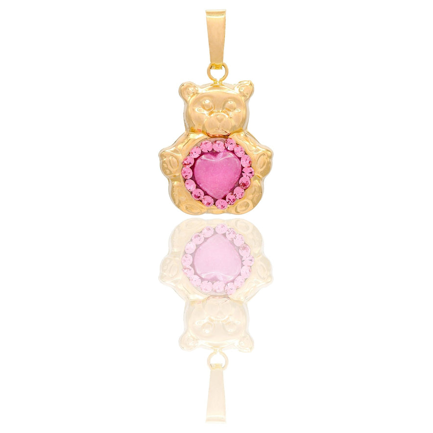 Ciondolo in oro GIALLO Oro 18 carati Orsetto Bombato Zircone rosa cm.2 Gr. 0,9