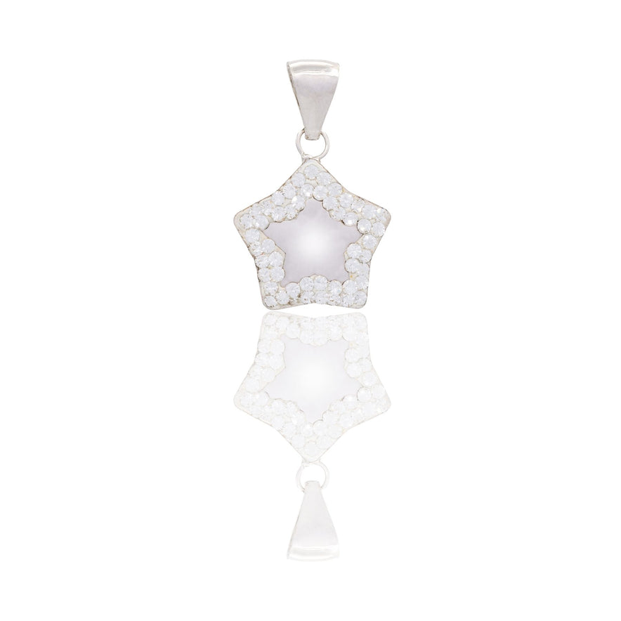 Ciondolo in oro BIANCO Oro 18 carati Stella Bombata Zirconi Bianchi cm.2 Gr. 0,85