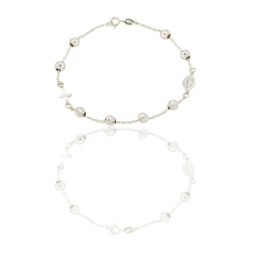 Bracciale in oro BIANCO Oro 18 carati Rosario sfere diamantate Solo oro 19cm sfera 6mm Gr. 3,9