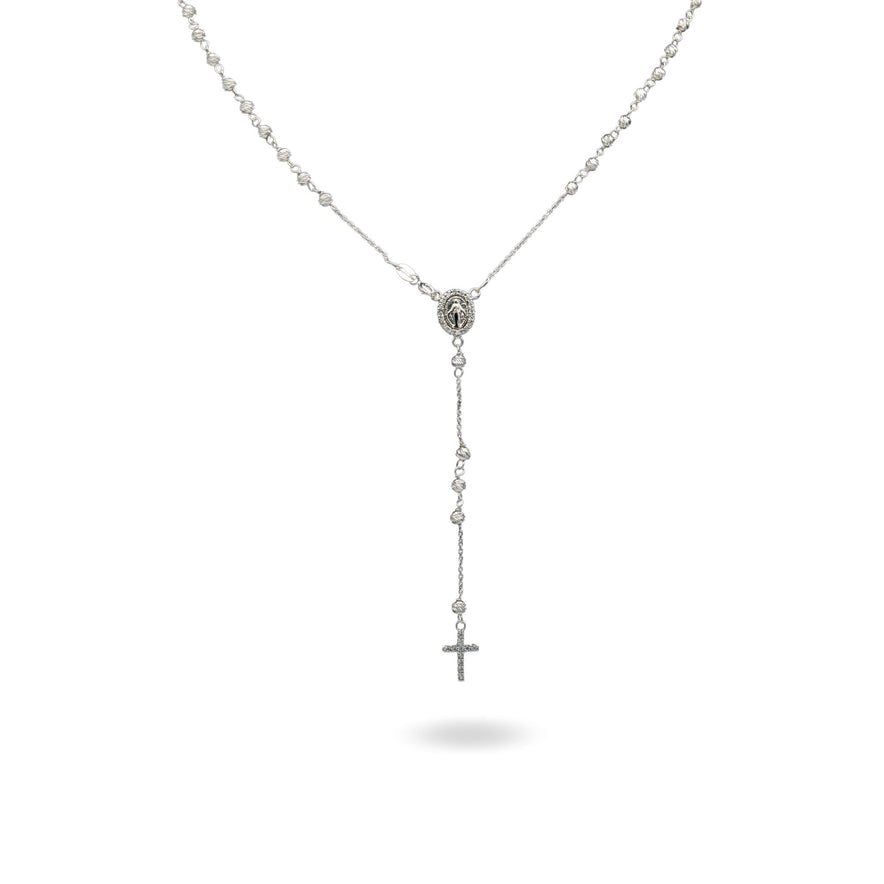 Collana in oro BIANCO Oro 18 carati Rosario Pendente Sfere Slash Solo Oro Sfera mm.3  Gr. 6,8