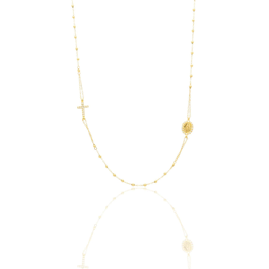 COLLANA I ROSARIO GIROCOLLO SFERE LISCE MADONNA E CROCE