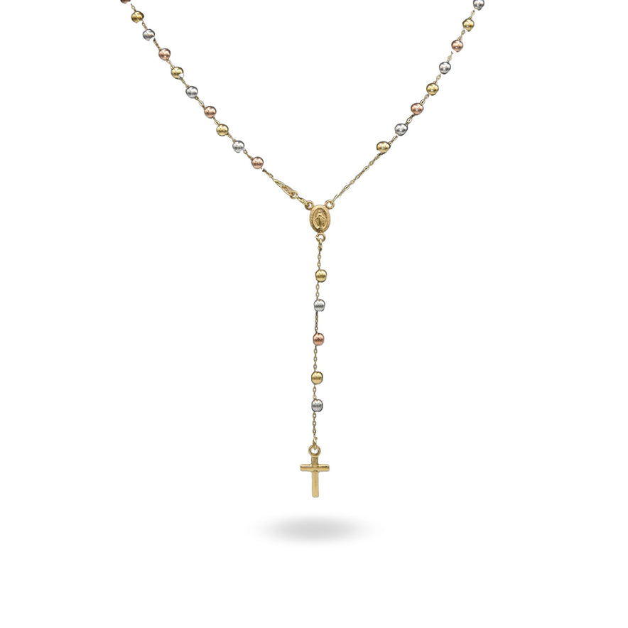 Collana in oro 3 COLORI Oro 18 carati Rosario Pendente Sfere Lisce Solo Oro Gr. 6