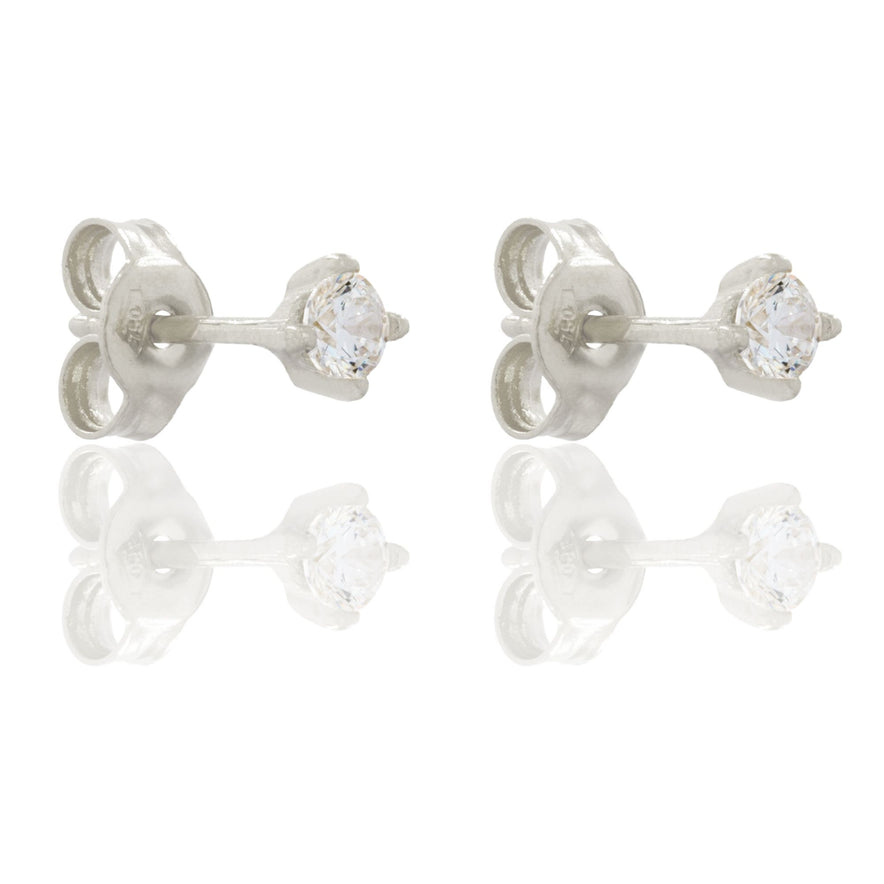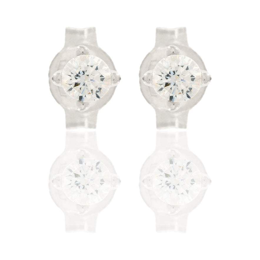 Orecchini in oro BIANCO Oro 18 carati Punto Luce Quadrato 4 Griffe Zircone Bianco Gr. 0,7