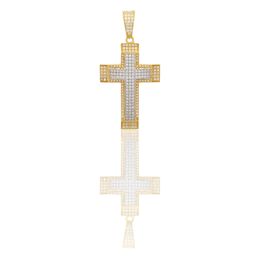 Ciondolo in oro BICOLORE Oro 18 carati Croce Stilizzata Pavè Zirconi bianchi Gr. 7,9