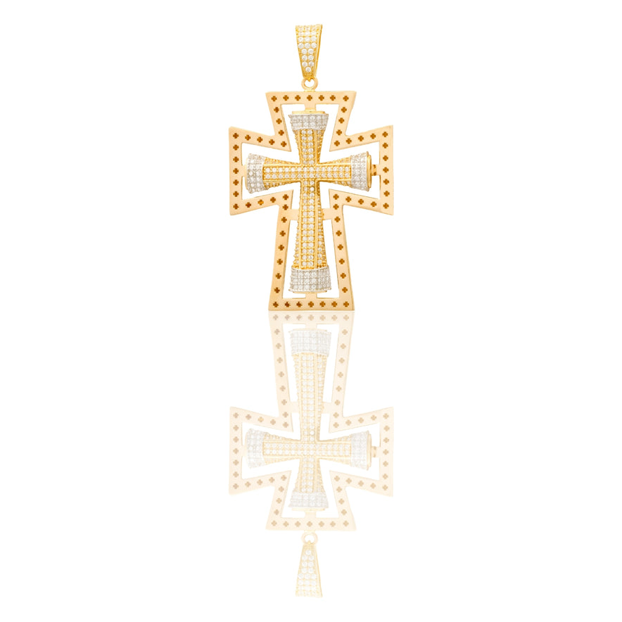 Ciondolo in oro BICOLORE Oro 18 carati Croce Cilindrica Zirconi Bianchi Gr. 12,5
