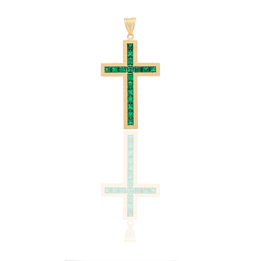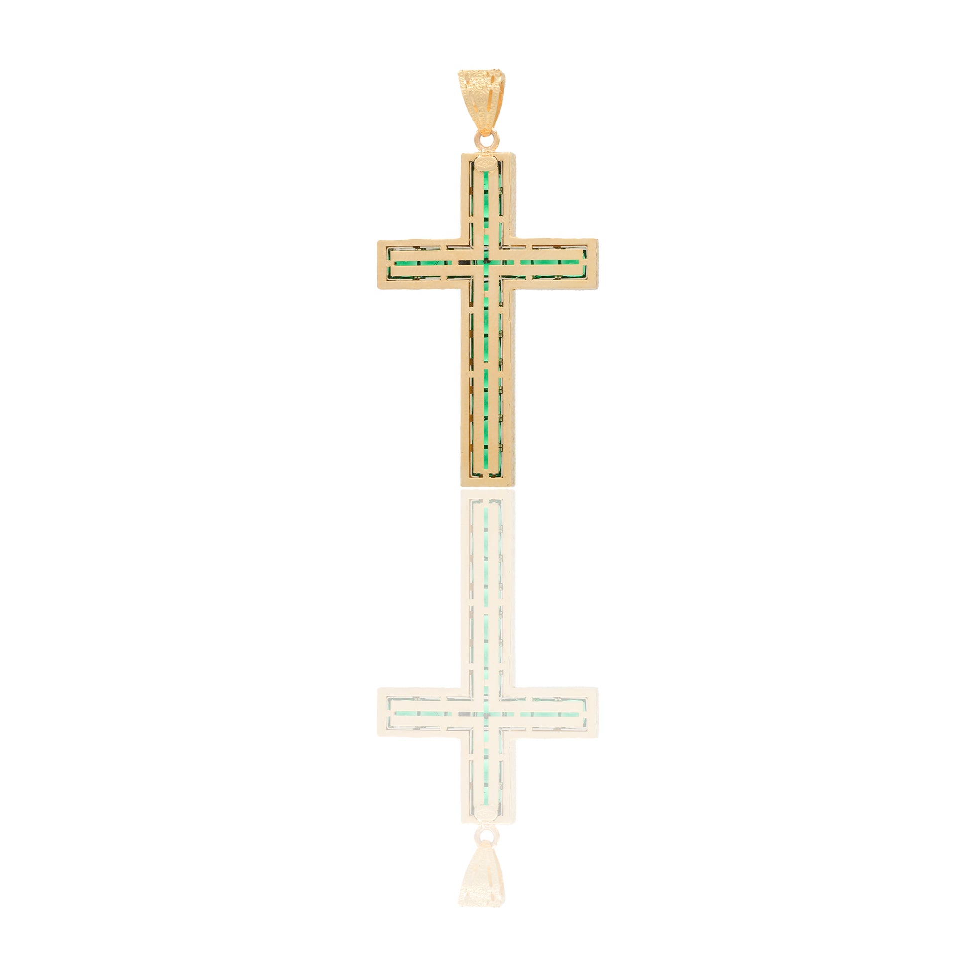 Ciondolo in oro GIALLO Oro 18 carati Croce diamantata Zirconi Verdi 5,7cm x 3cm Gr. 6,4