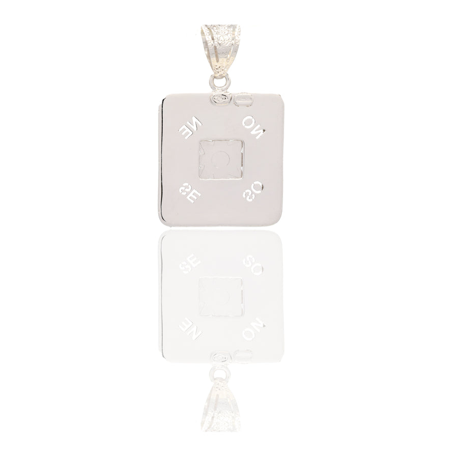 Ciondolo in oro BIANCO Oro 18 carati Rosa dei venti quadrata Solo Oro 3,2cm x 2cm Gr. 3,45