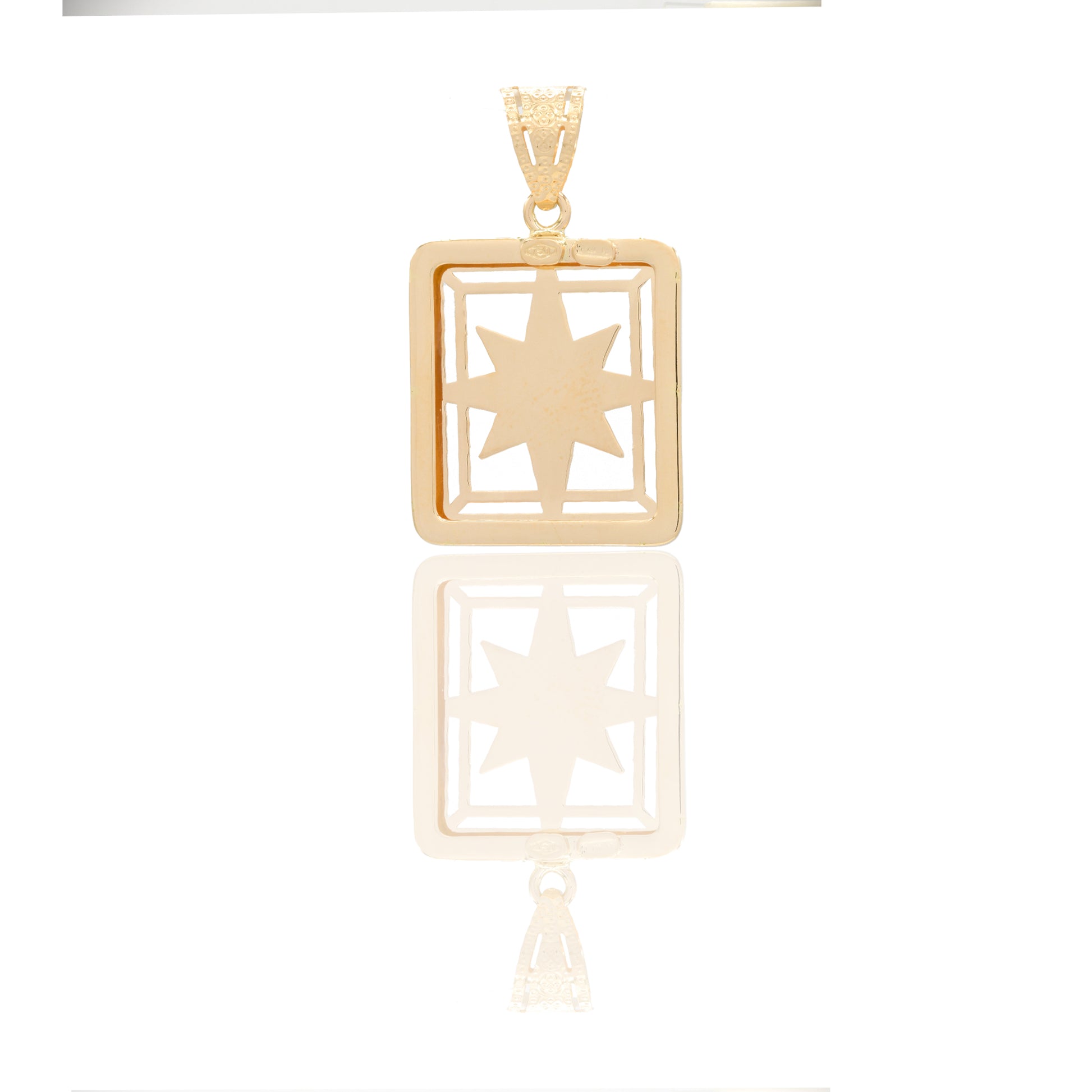 Ciondolo in oro GIALLO Oro 18 carati Rosa dei venti quadrata traforata Solo Oro 3,2cm x 2cm Gr. 2,4