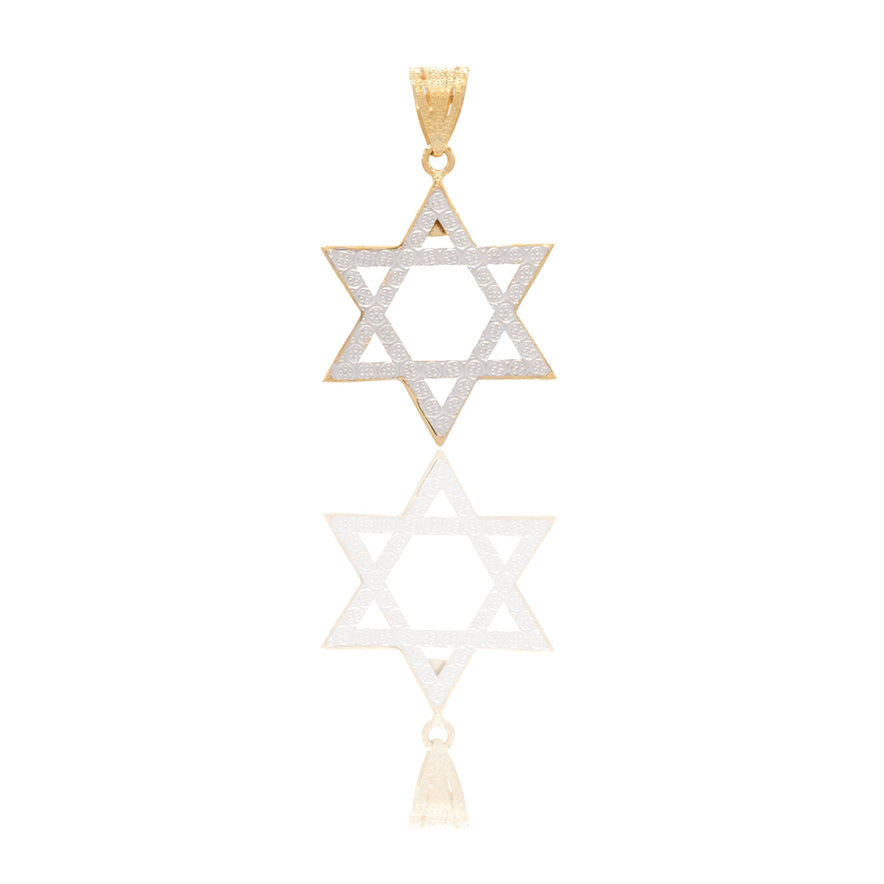 Ciondolo in oro BICOLORE Oro 18 carati Stella di Davide diamantata Solo Oro 4cm x 2cm Gr. 2,35