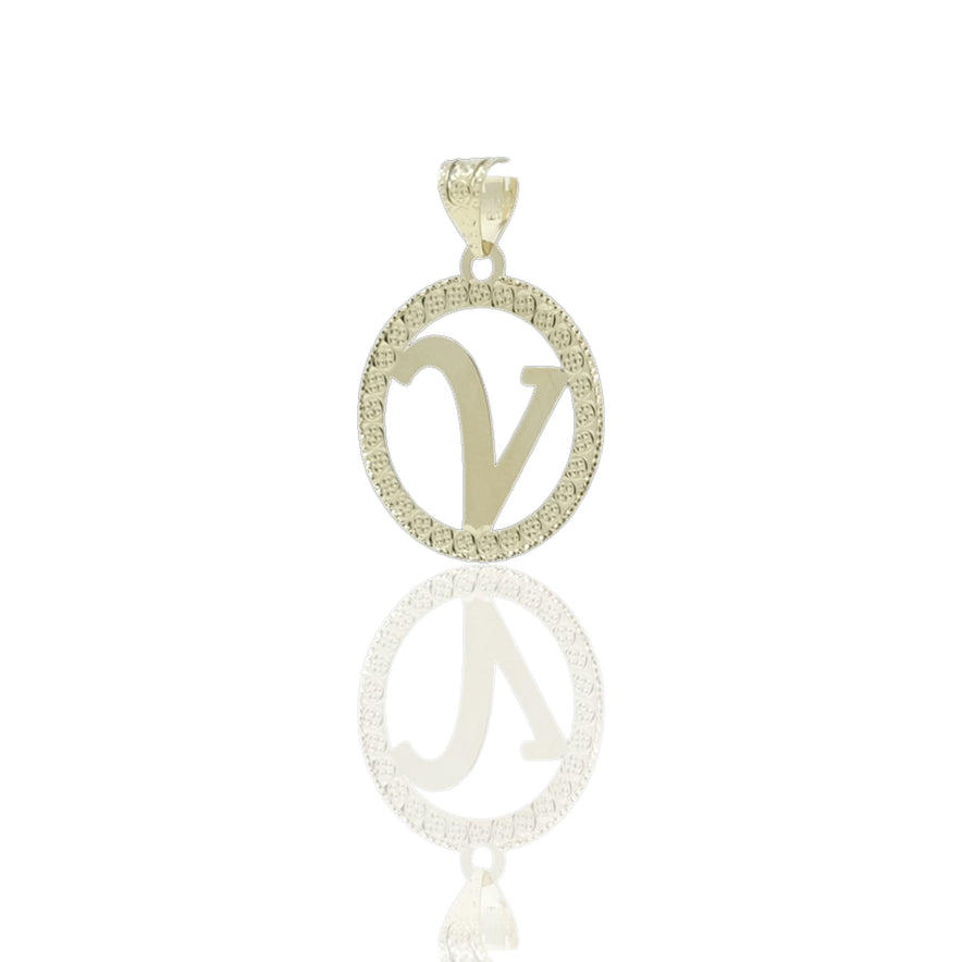 Ciondolo in oro GIALLO Oro 18 carati Lettera V Corsivo Con Contorno Solo Oro diam. cm.2,2 Gr. 0,8