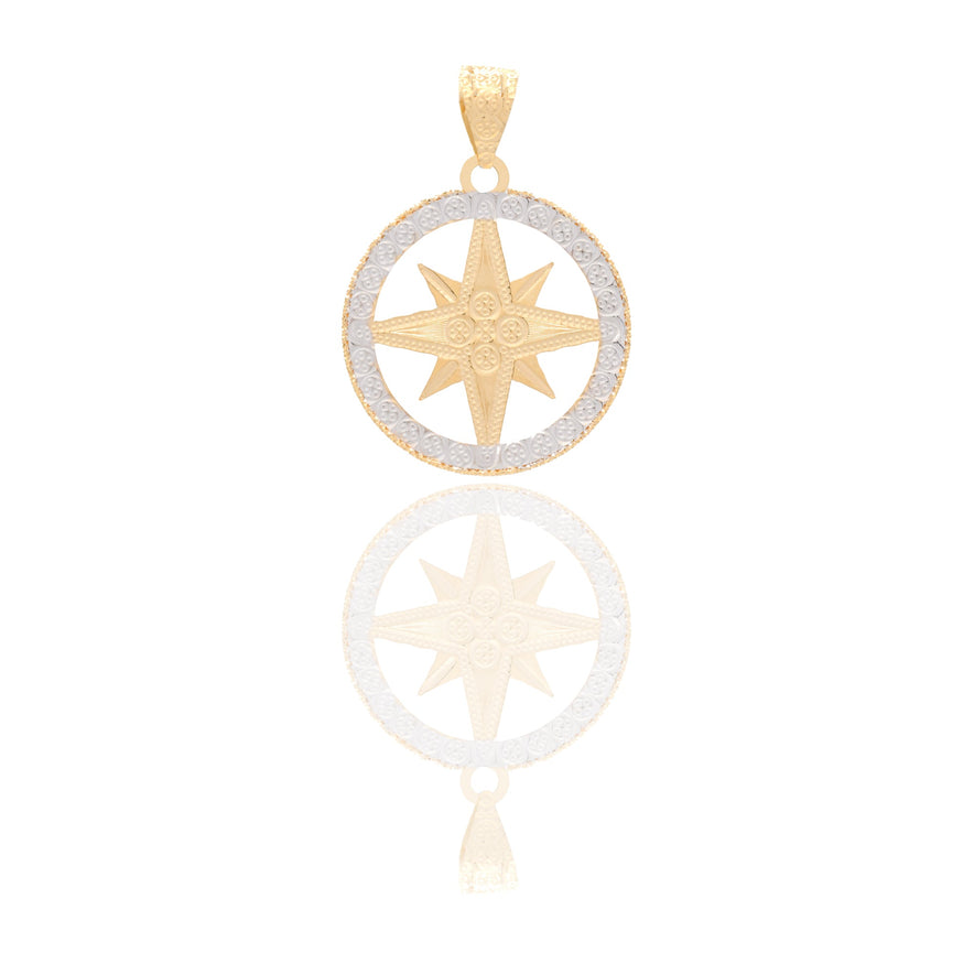 Ciondolo in oro BICOLORE Oro 18 carati Rosa dei venti traforata Solo Oro 2,9cm x 2cm Gr. 0,8
