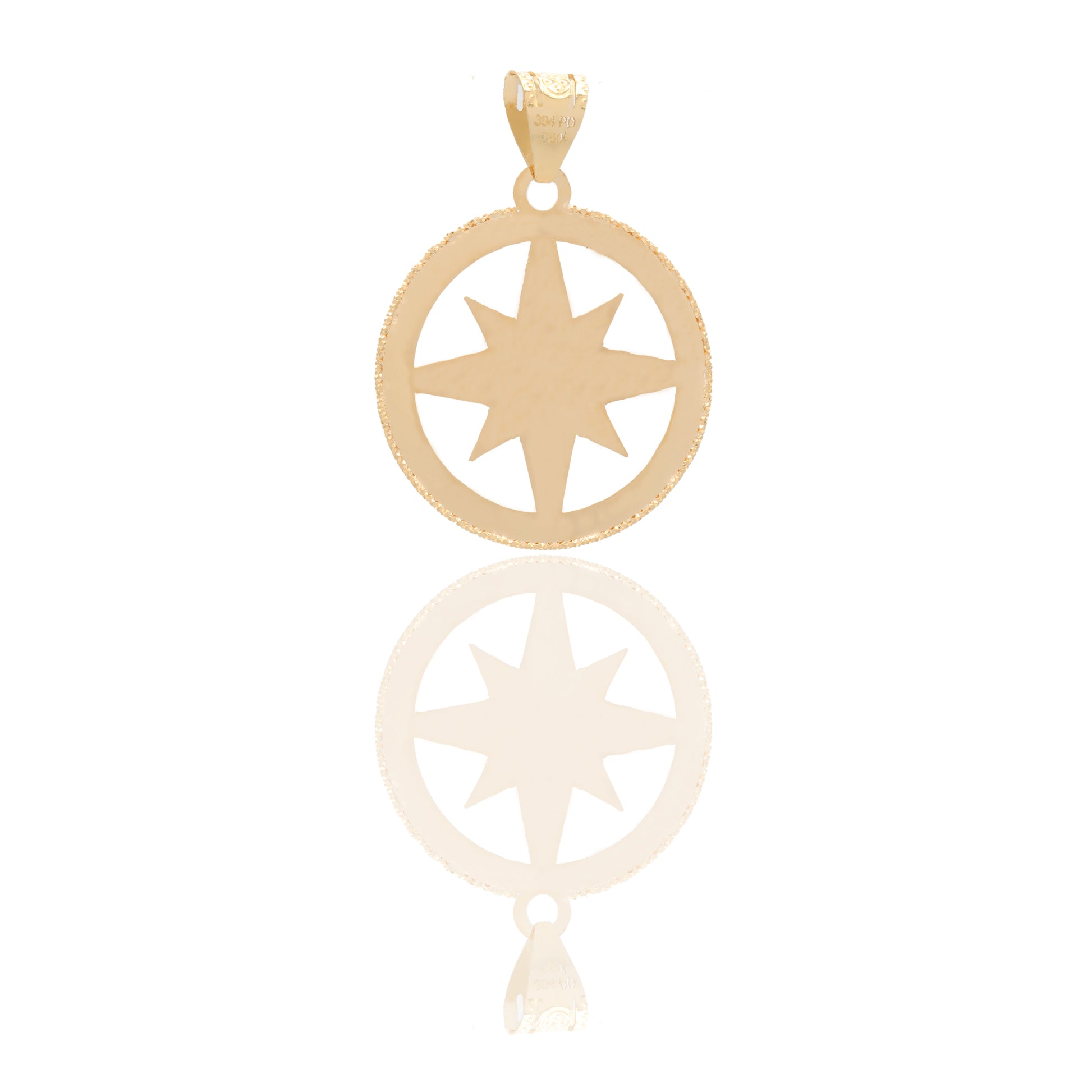 Ciondolo in oro GIALLO Oro 18 carati Rosa dei venti traforata Solo Oro 2,9cm x 2cm Gr. 0,8