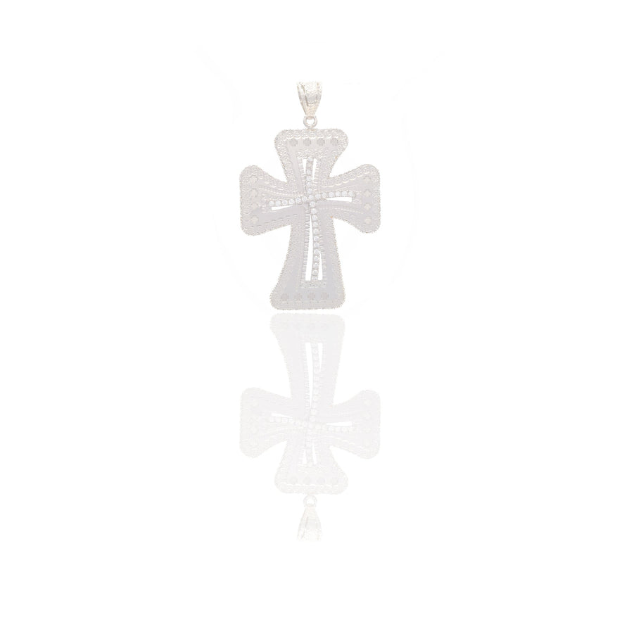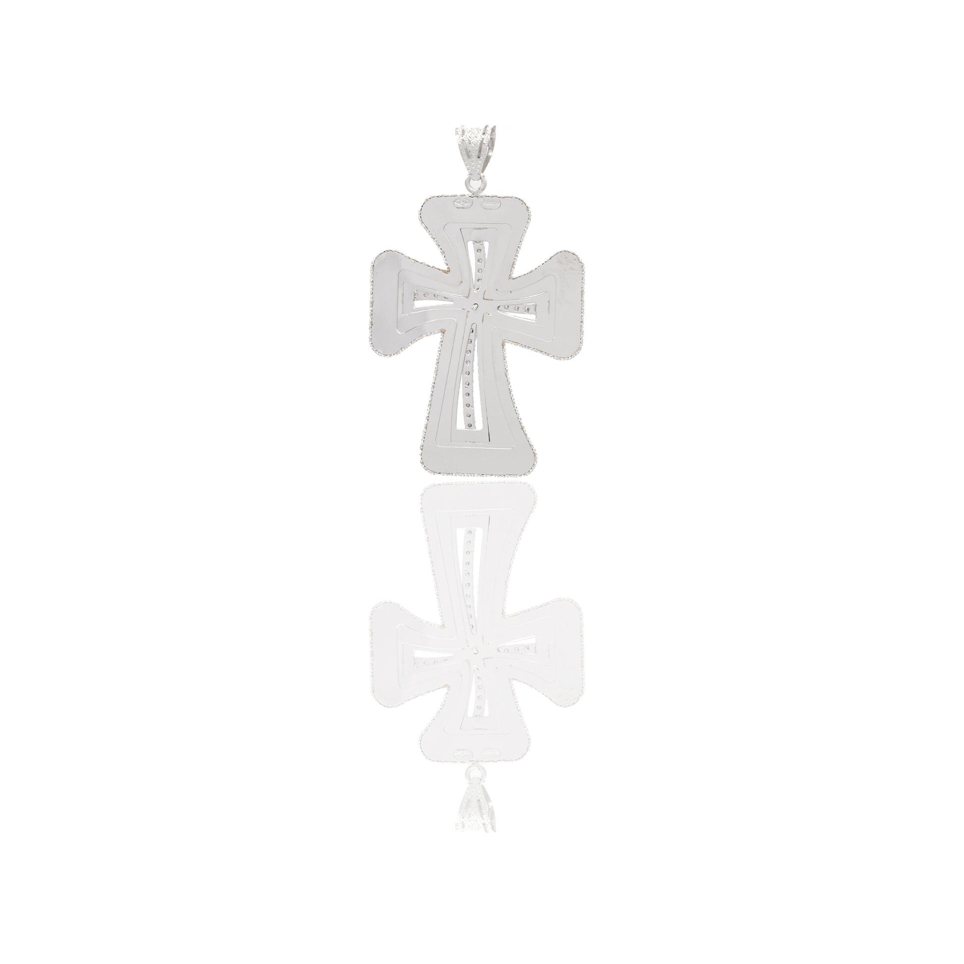 Ciondolo in oro BIANCO Oro 18 carati Croce lavorata Zirconi Bianchi 5,3cm x 3,4cm Gr. 6,35
