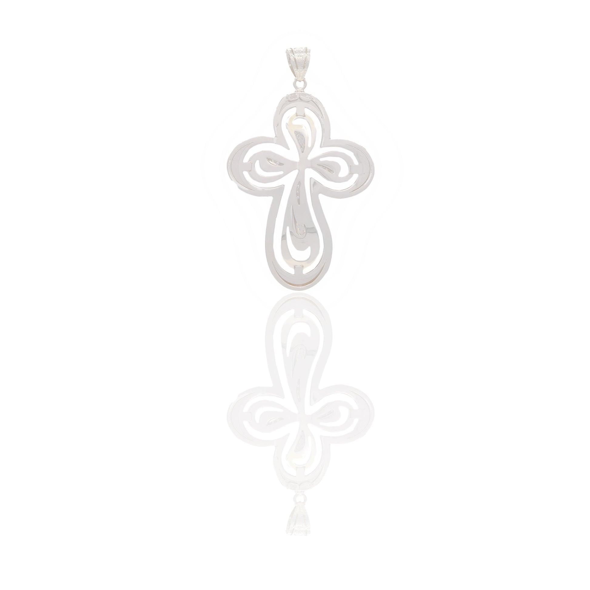 Ciondolo in oro BIANCO Oro 18 carati Croce lucida e traforata Zirconi Bianchi 6,5cm x 4cm Gr. 7,1