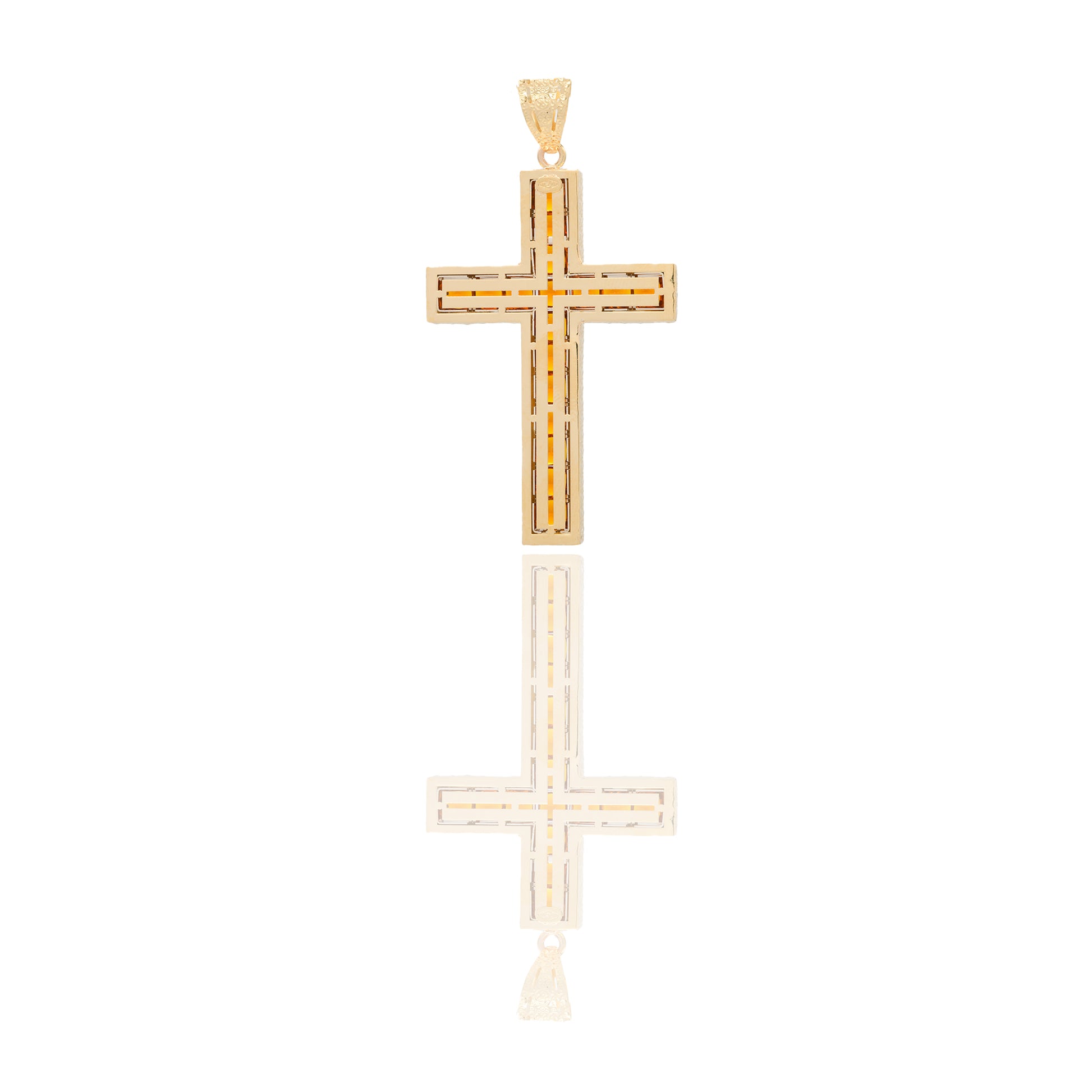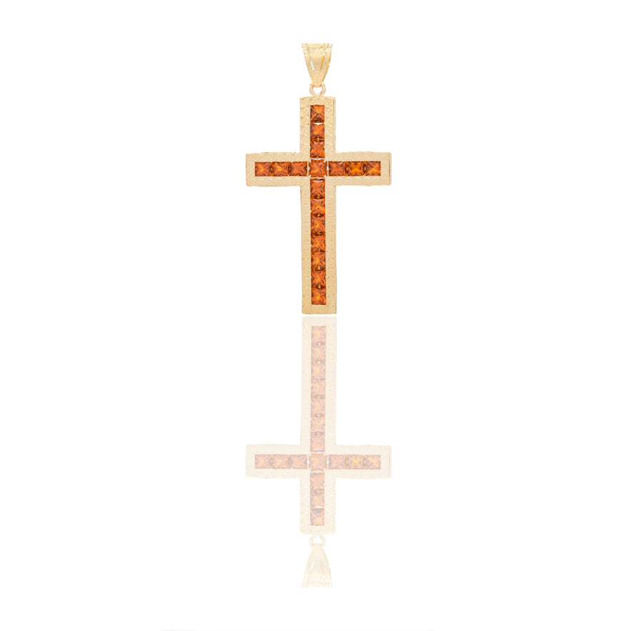 Ciondolo in oro GIALLO Oro 18 carati Croce diamantata Zirconi Arancioni 5,7cm x 3cm Gr. 6,4