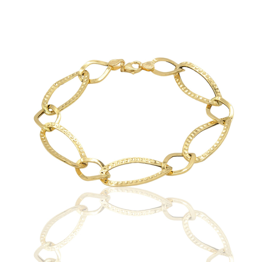 Bracciale in oro GIALLO Oro 18 carati Maglia intrecciata martellata Solo Oro Gr. 2,9
